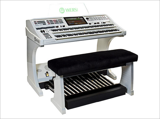Wenn Sie eine große Orgel mit Vollpedal suchen, sich aber nicht mit zusätzlichen Lautsprecherboxen anfreunden können, dann sollten Sie sich die WERSI OAX-800 einmal näher ansehen - und vor allen Dingen anhören! Die OAX-800 ist mit zwei 76-Tasten Manualen, einem 25-Tasten-Pedal sowie mit integrierten Lautsprechern ausgestattet und steht damit in der Tradition der beliebten Scala aus der OAS-Serie. Nicht umsonst war die Scala das bevorzugte Instrument sowohl von Profi- als auch von ambitionierten Hobby-Organisten.